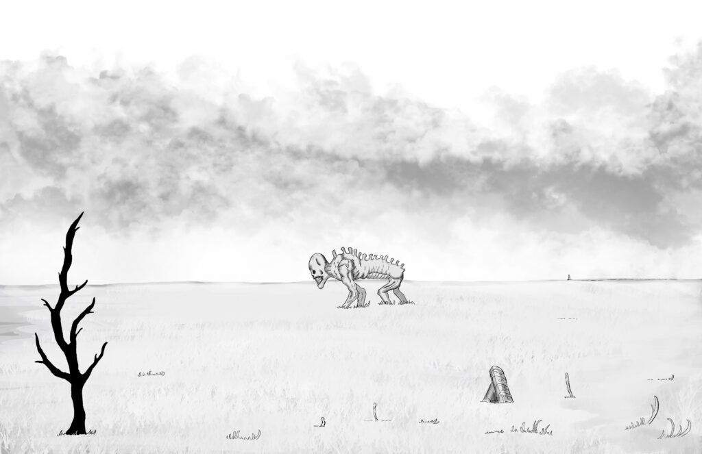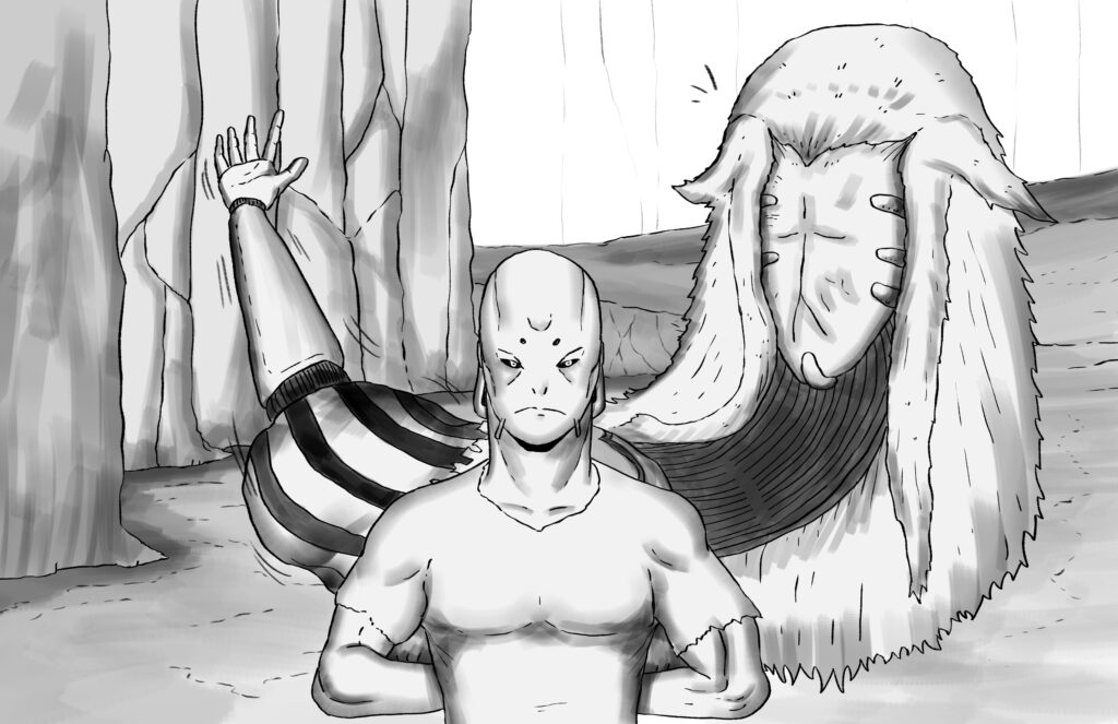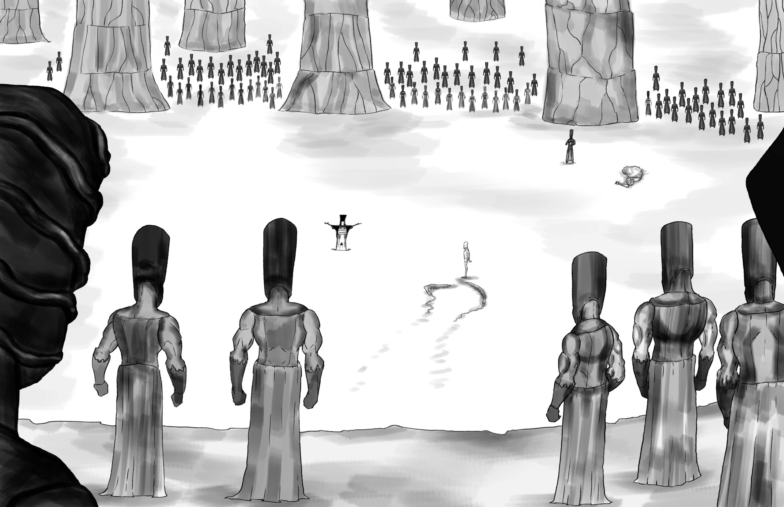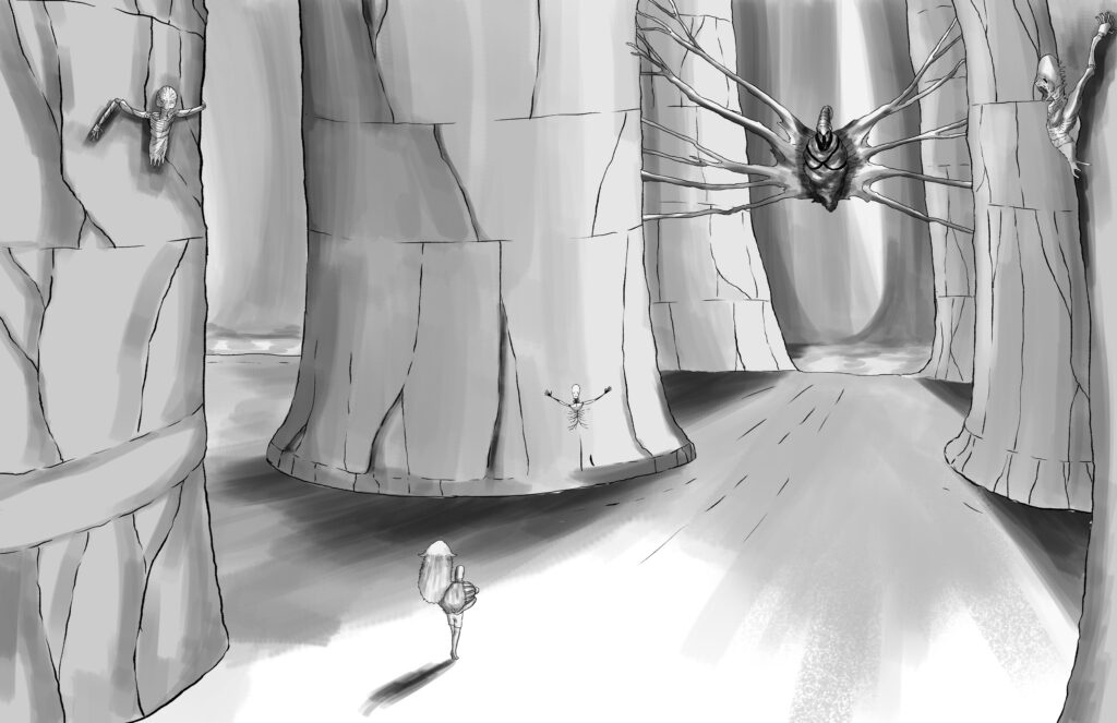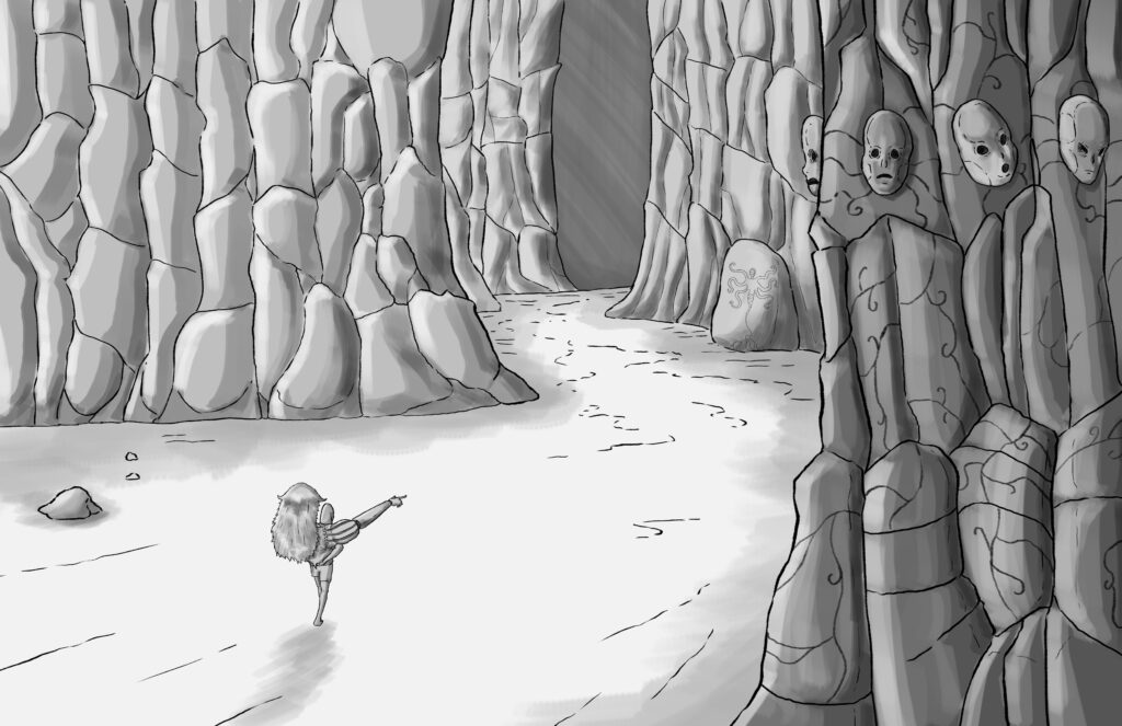 It seems awfully quiet as they enter the valley of pillars. Only Mane’s works of art are at display, giving an eery feel to the place. As they pass each creature that has been plastered upon the surrounding pillars, Stride is unsure whether he should be more fearful of the Monarch’s soldiers or the creature that he carries with him.