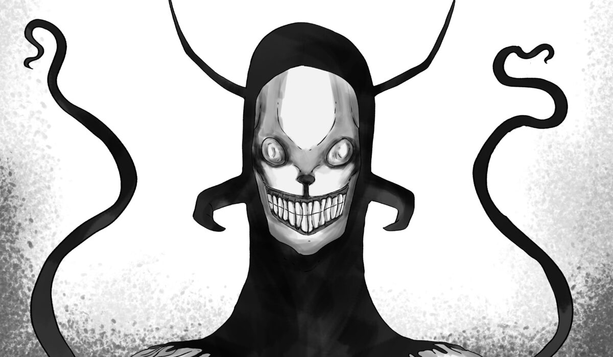 Mane gestures them to lean in closer as his hand covers the place where his mouth should be for spectacle.