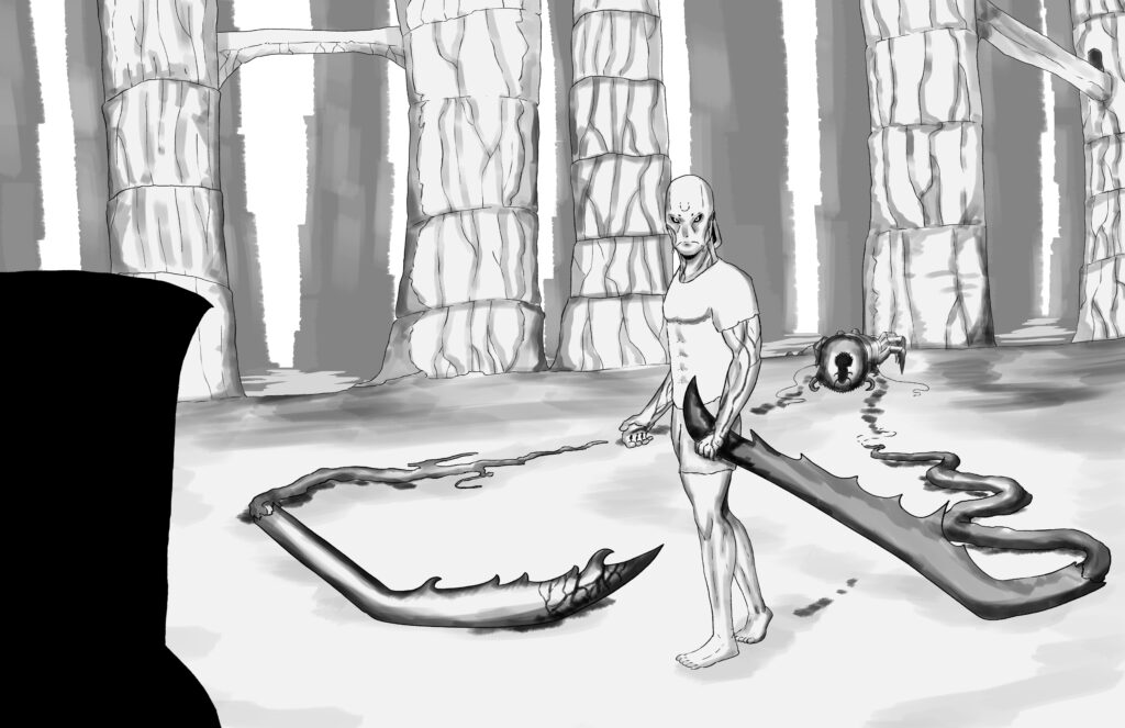 “Look at the statue to your left, Stride. I call this work ‘The Seventh Door’. It portrays the desire to flee from one’s own body and escape the pain and dread you experience while you are trapped and feasted on from within by the Incubys hatchlings.”