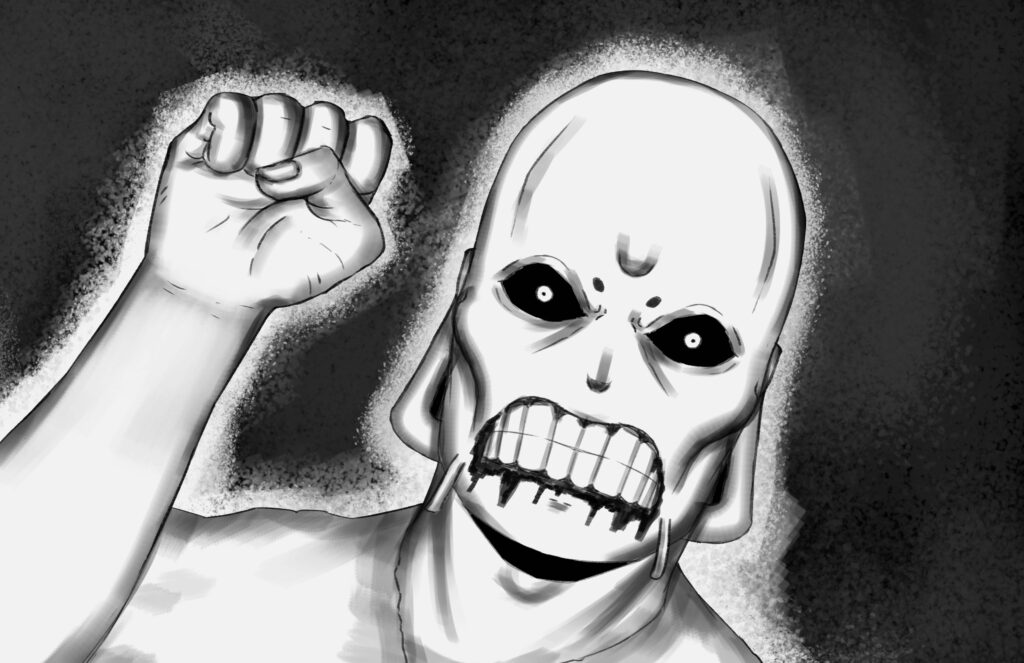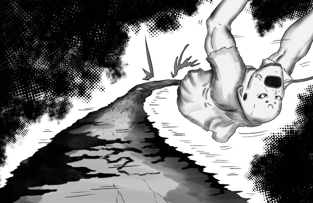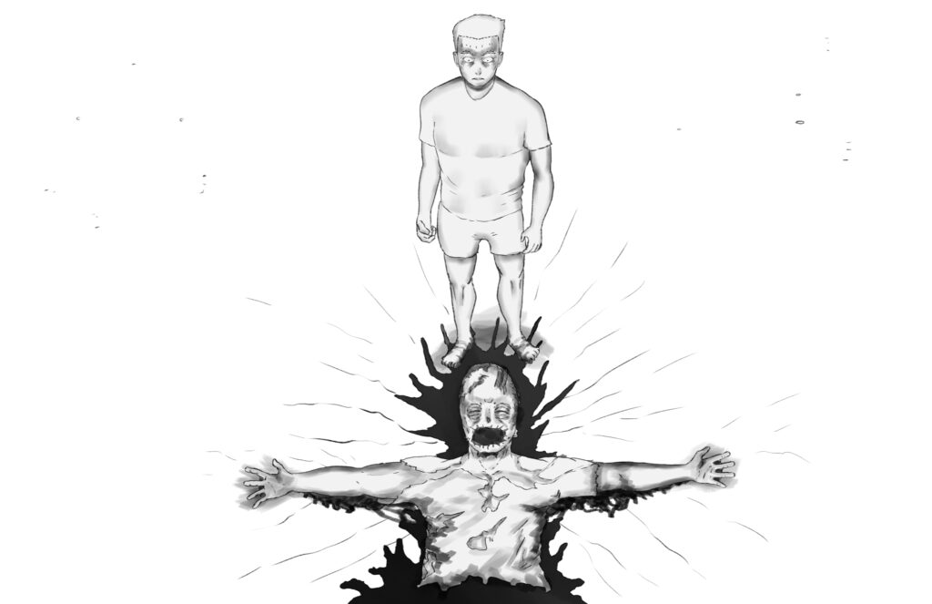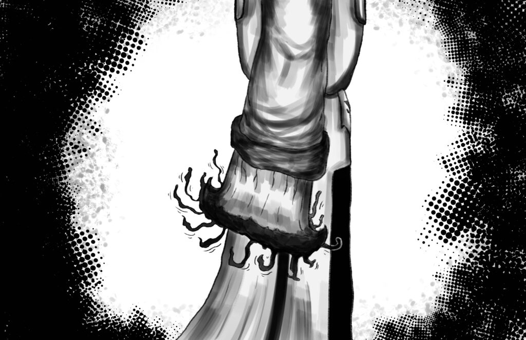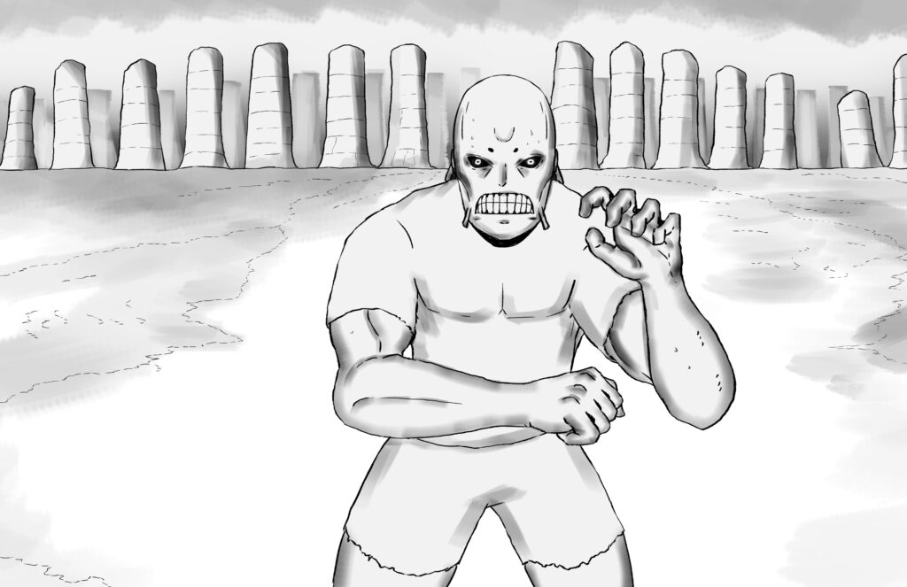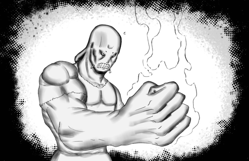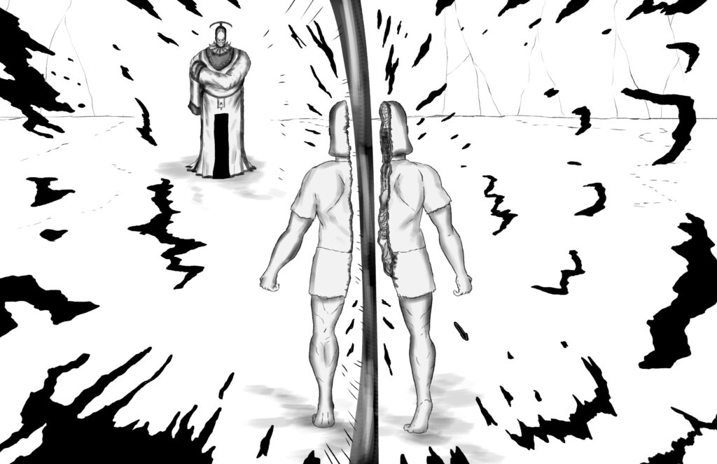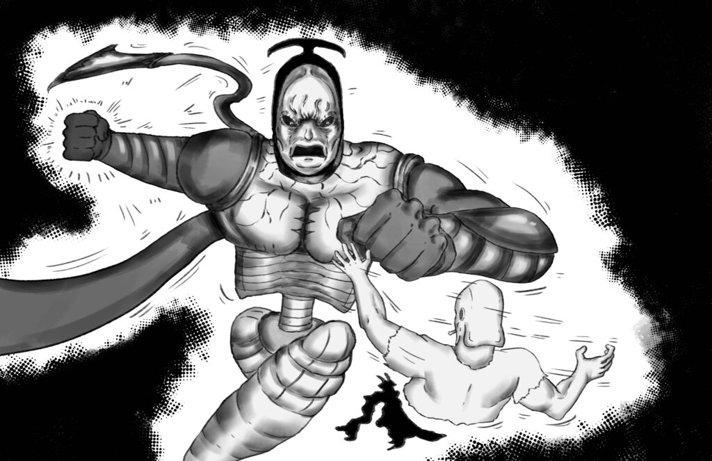 Too broken to fight back, Stride’s body is shortly overtaken by a deep-seated anger from within his heart. His hand clasps firmly, and feels like it holds onto something tangible. It is warm and soothing. His blood, which wets the Monarch’s blade.