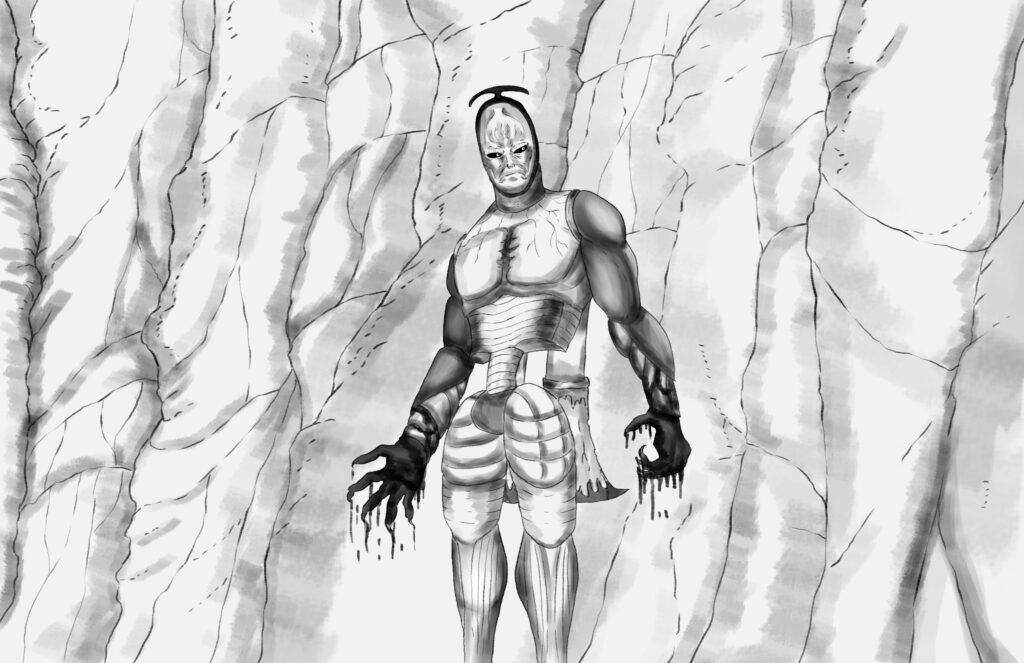 Stride’s heart beats louder, angered and unafraid.The Monarch breaks off the blood-clotted spears as he looks with disdain at the altered attitude of his adversary.