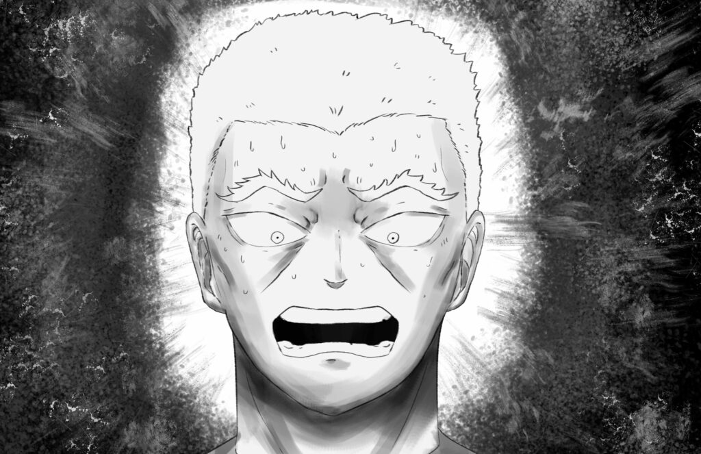“I cannot dodge in time…” Stride whispers anxiously as sweat gushes from his face.
